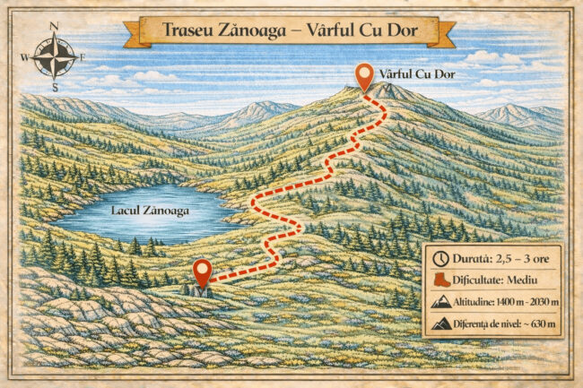 La aproximativ 140 de minute de PurpleVague, această drumeție urcă din zona lacului Bolboci spre înălțimile Vârfului Cu Dor, traversând un peisaj divers, ce combină păduri alpine cu poieni largi și abrupturi stâncoase în depărtare.   Drumul se desfășoară într-o natură sălbatică, cu aer proaspăt de munte și deschideri spectaculoase către văile ce înconjoară Bucegii. De la Vârful…